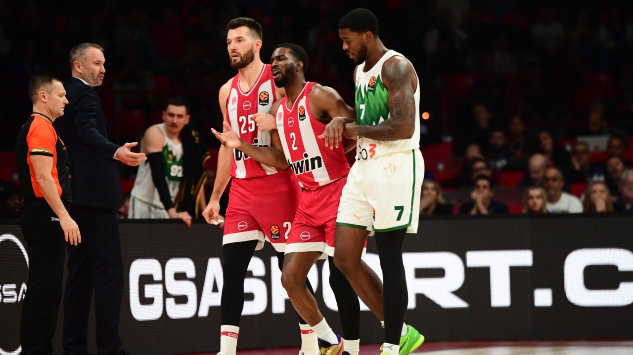 Ο Κίναν Έβανς, μετά από 2:01΄΄ στο παρκέ στην 1η περίοδο, στον μόλις πρώτο αγώνα του στη Euroleague με τη φανέλα του Ολυμπιακού και την πρώτη συμμετοχή του στη διοργάνωση από τις 11 Απριλίου 2024 όταν ήταν παίκτης της σημερινής αντιπάλου των Πειραιωτών… έδειξε να πονά πολύ, χωρίς να έχει πατήσει σε πόδι αντιπάλου. Ο Έβανς, βγήκε υποβασταζόμενος από το παρκέ από τους Άλεκ Πίτες και Μόουζες Ράιτ, χωρίς να μπορεί να πιστέψει την ατυχία του, είχε πάρει τη θέση του τραυματία Φρανκ Νιλικίνα (οπίσθιος μηριαίος).