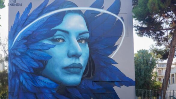 Ολοκληρώθηκε η τοιχογραφία της μυθικής Σειρήνας Παρθενόπης από τη Leticia Mandragora σε σχολείο του Κορυδαλλού