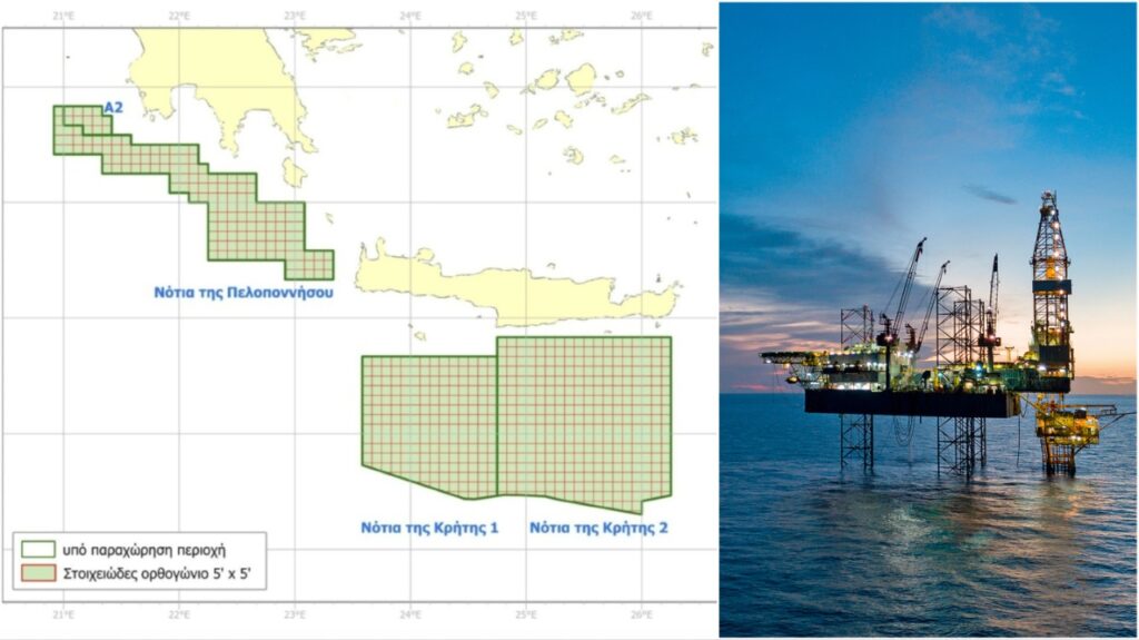 Πρόκειται για τις περιοχές συνολικής έκτασης 47 χιλιάδων τετραγωνικών χιλιομέτρων νοτίως της Πελοποννήσου (περιοχές «Α2» και «Νότια της Πελοποννήσου») και στις θαλάσσιες περιοχές νοτίως της Κρήτης (περιοχές «Νότια της Κρήτης 1» και «Νότια της Κρήτης 2») οι οποίες μετά την υπογραφή των σχετικών συμβάσεων, την έγκρισή τους από το Ελεγκτικό Συνέδριο και την κύρωσή τους από τη Βουλή παραχωρούνται για έρευνες υδρογονανθράκων στις κοινοπραξίες των ομίλων Chevron – Helleniq Energy.