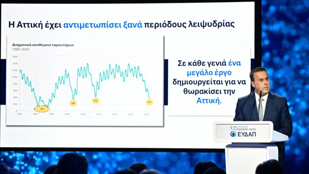 Ο Σταύρος Παπασταύρου προειδοποίησε ότι η Ελλάδα είναι 19η παγκοσμίως σε κίνδυνο λειψυδρίας, με την Αττική να βρίσκεται στο επίκεντρο της κρίσης. Τα αποθέματα στους ταμιευτήρες μειώνονται κατά περίπου 250 εκατομμύρια κυβικά μέτρα ετησίως, ενώ οι βροχοπτώσεις έχουν περιοριστεί κατά 25% και η εξάτμιση έχει αυξηθεί κατά 15%.