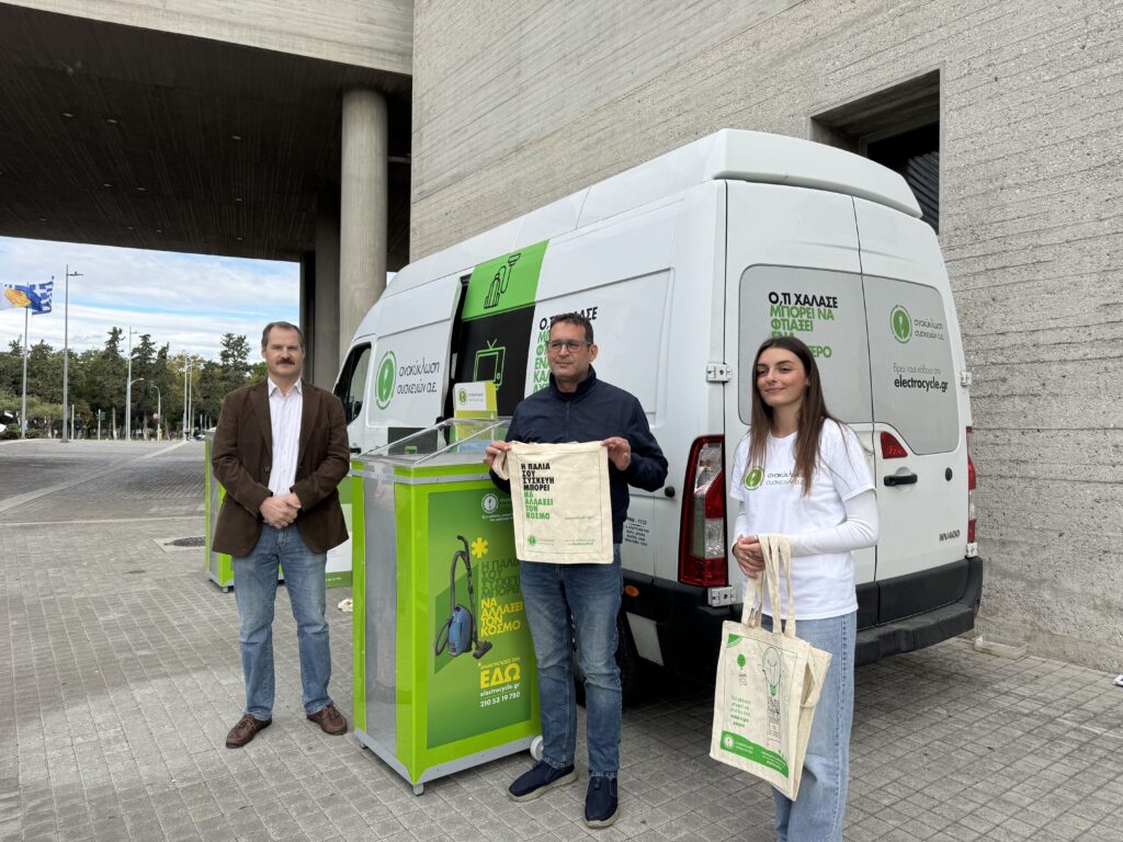 Από τις 10 το πρωί, στο δημαρχείο της πόλης έχει «σταθμεύσει» ένα ειδικά διαμορφωμένο van που προσκαλεί τους δημότες να πετάξουν παλιές, ξεχασμένες ή χαλασμένες ηλεκτρικές συσκευές, κινητά τηλέφωνα, φορτιστές, υπολογιστές αλλά και λαμπτήρες, στέλνοντας με τον τρόπο αυτό το μήνυμα για την προστασία του περιβάλλοντος.