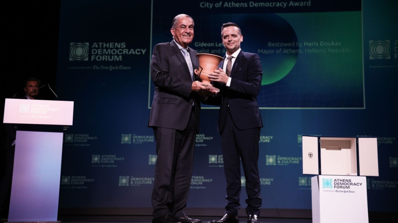 Το Βραβείο Δημοκρατίας 2025 απένειμε ο Δήμαρχος Αθηναίων, Χάρης Δούκας, στον Ισραηλινό δημοσιογράφο και συγγραφέα, Γκίντεον Λέβι, κατά τη διάρκεια τελετής, που πραγματοποιήθηκε την Τετάρτη 1 Οκτωβρίου, στο Ολύμπια, Δημοτικό Μουσικό Θέατρο «Μαρία Κάλλας».