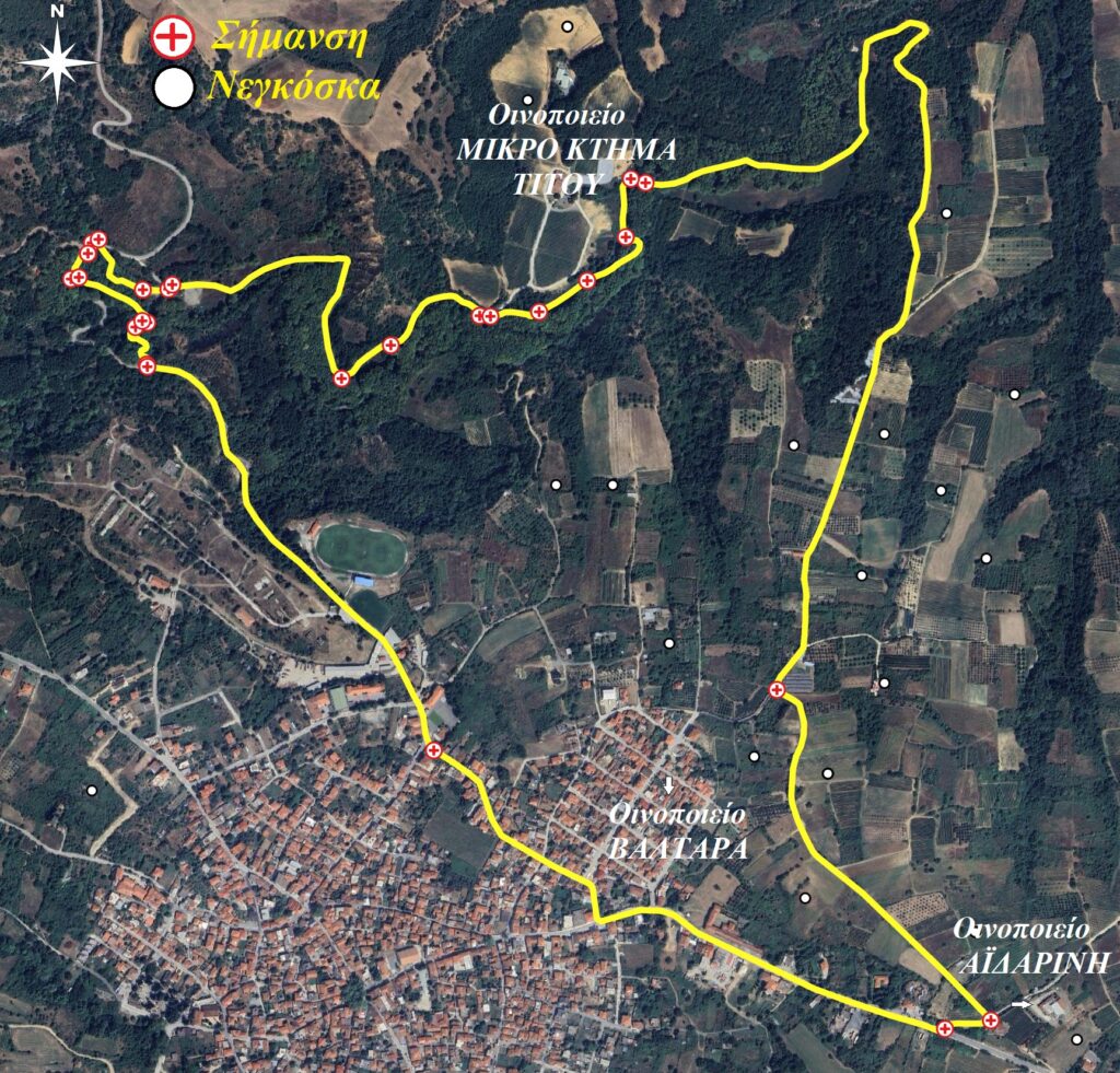 Το μοναδικό «ταμπεραμέντο» της ποικιλίας ερυθρού σταφυλιού Νεγκόσκα «πρωταγωνιστεί στο φερώνυμο πεζοπορικό μονοπάτι στη Γουμένισσα, το οποίο, πλέον, έχει σηματοδοτημένη κυκλική διαδρομή μήκους 6,5 χιλιομέτρων, η οποία συνδέει το κέντρο της μακεδονικής κωμόπολης με την τοποθεσία Δύο Ποτάμια και οινοποιεία που βρίσκονται κοντά σ’ αυτήν. Για το σκοπό αυτό συνεργάστηκαν το Γραφείο Τουρισμού της Περιφερειακής Ενότητας Κιλκίς και ο Ορειβατικός Σύλλογος Περιηγητών Γουμένισσας (Ο.Σ.ΠΕ.Γ.) με τη στήριξη του Δασαρχείου Γουμένισσας.